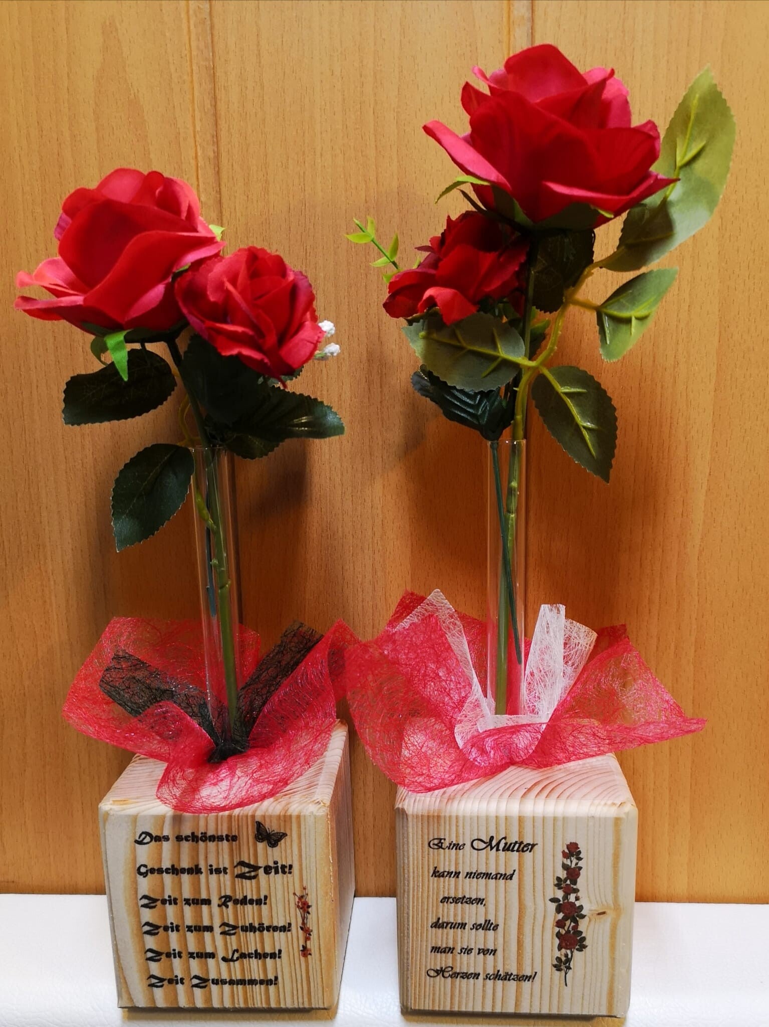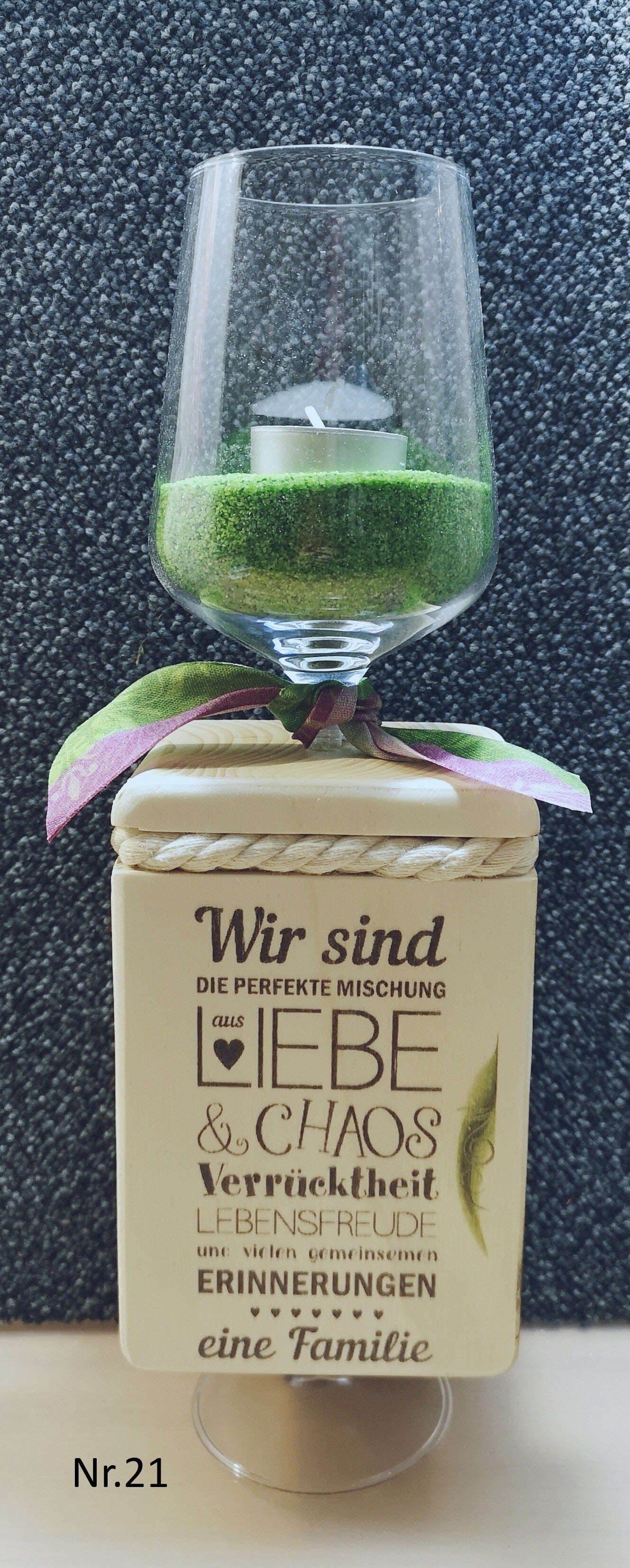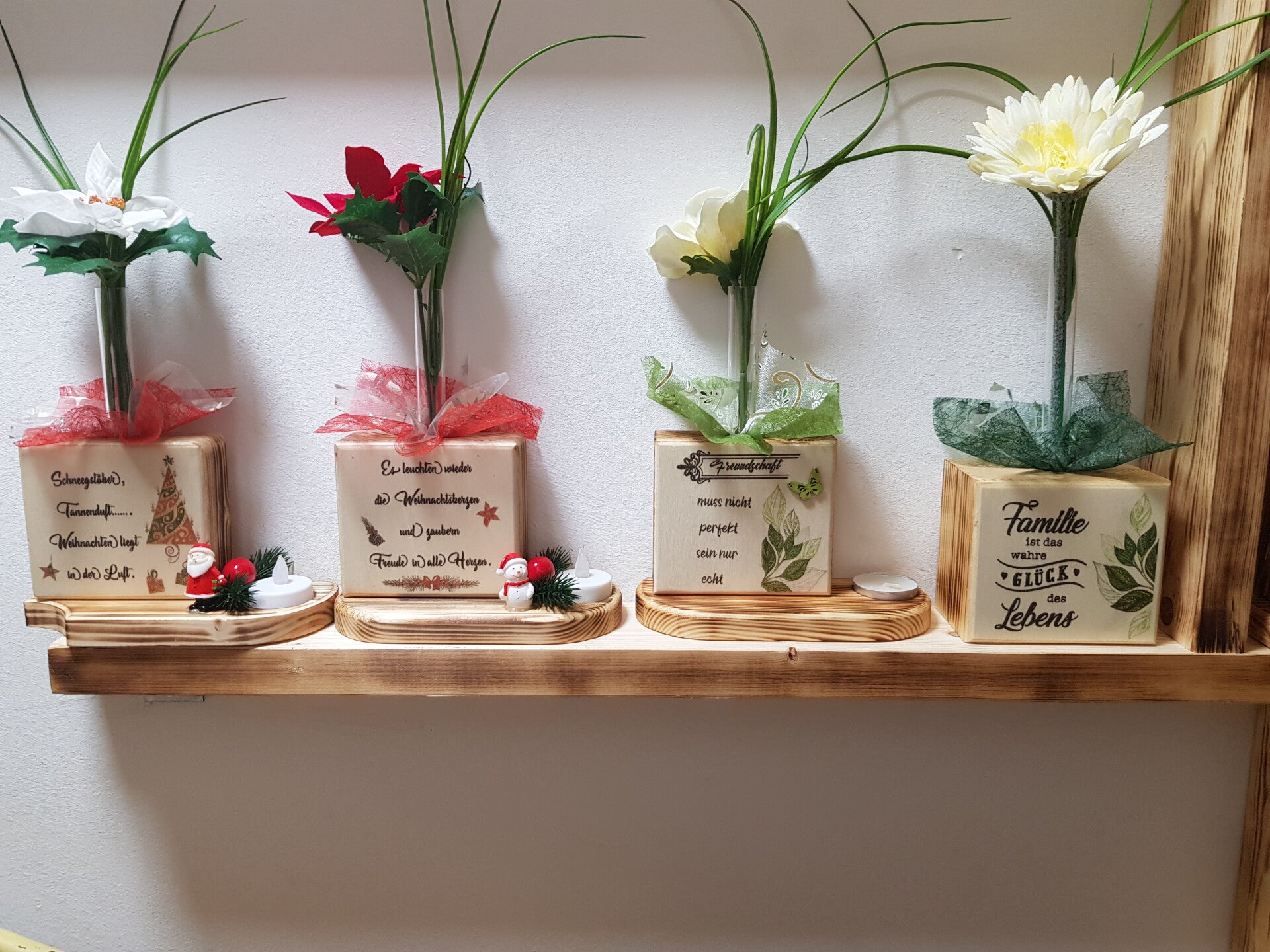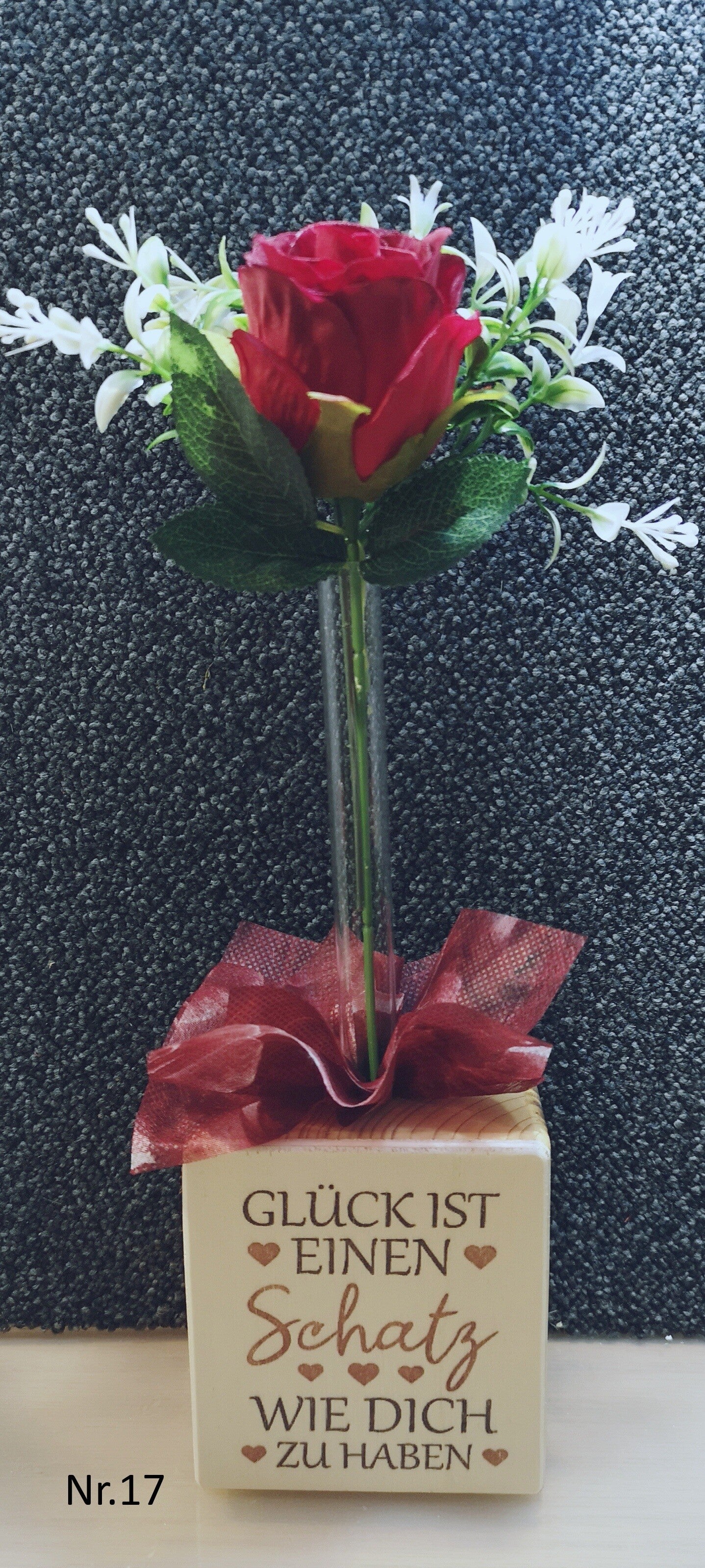 Dekowürfel mit Vase oder Weinglas und Gesteck, natürlich jeder Text auf Wunsch machbar!